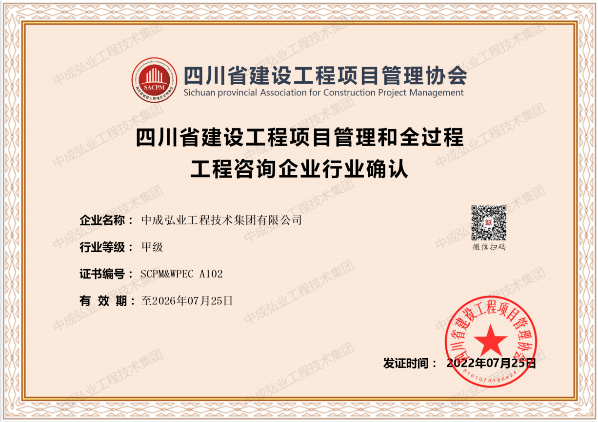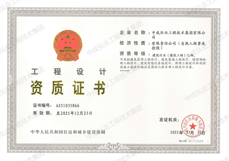 中成弘業(yè)工程技術(shù)集團(tuán)成立于有著3000余年建城史,故有“錦官城”之稱的成都。公司于2014年05月15日在四川省工商行政管理局注冊(cè)登記,注冊(cè)地址為成都市高新區(qū)益州大道北段388號(hào)8棟8層818號(hào),注冊(cè)資本為9800萬元整。我公司主要經(jīng)營工程咨詢、工程管理服務(wù)、工程勘察設(shè)計(jì)、建筑工程、水利水電工程、公路工程、市政公用工程、電力工程、機(jī)電工程、建筑裝修裝飾工程、古建筑工程、消防設(shè)施工程、防水防腐保溫工程、建筑機(jī)電安裝工程、起重設(shè)備安裝工程、通信工程、公路路面工程、公路交通工程、公路路基工程、輸變電工程、橋梁工程、隧道工程、電子與智能化工程、城市及道路照明工程、地基基礎(chǔ)工程、鋼結(jié)構(gòu)工程、建筑幕墻工程、水利水電機(jī)電安裝工程、水工金屬結(jié)構(gòu)制作與安裝工程、航道工程、河湖整治工程、機(jī)場(chǎng)場(chǎng)道工程、礦山工程、...